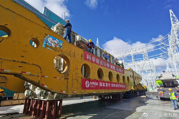 9月16日下午17時20分,一輛長98.5米共有276個車輪的大型橋式運輸車緩緩駛?cè)肭嘣ブ绷鞴こ獭?00千伏特高壓青南換流站,車上運載著世界首臺在工程建設(shè)當(dāng)?shù)赝瓿山M裝和出廠試驗的高端換流變壓器,也是特高壓青南換流站首臺高端換流變。標(biāo)志著工程高端系統(tǒng)建設(shè)即將進(jìn)入主電氣設(shè)備安裝階段,青豫直流工程是世界首次采用特高壓換流變現(xiàn)場組裝技術(shù)方案。(謝莉蓉 朱毅然 王軍軍)