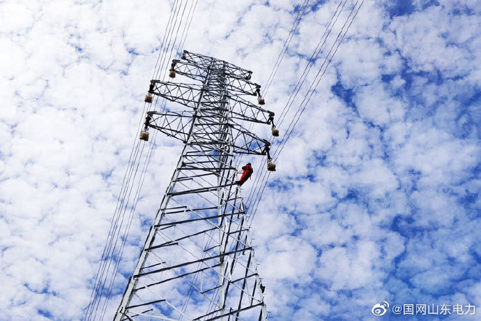 【42米高空架線 只為客戶用電】10月11日,國網(wǎng)臨朐縣供電公司員工在110千伏上林送出工程D18、D19號段進行附件安裝。該段線路橫跨彌河,塔高42米,檔距429米,是本期工程檔距最大、施工最難、強度最高的一段線路。施工人員毫不畏懼、登頂高空,全力加快鐵塔附件安裝進度,確保鐵塔線路架設(shè)務(wù)期必成。