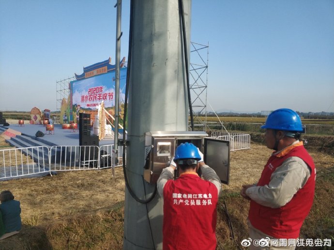 10月24日,2020年農(nóng)民豐收節(jié)在溧水區(qū)和鳳鎮(zhèn)吳村橋開幕,會中集中展示多種農(nóng)產(chǎn)品,引導(dǎo)企業(yè)助力扶貧。為保障供電安全穩(wěn)定,國網(wǎng)南京市溧水區(qū)供電公司和鳳供電所“金麥穗”黨員服務(wù)隊(duì)趕往現(xiàn)場,安排人員值守現(xiàn)場,對會場電氣設(shè)備進(jìn)行全面排查消除隱患,確保設(shè)備安全穩(wěn)定運(yùn)行。