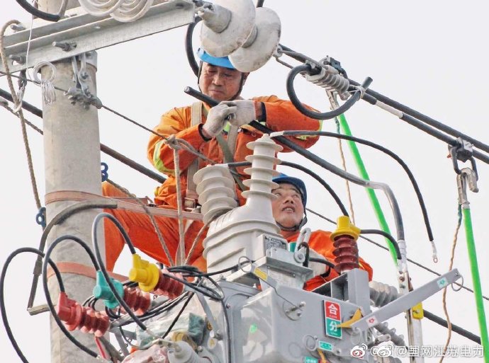 【開斷裝開關(guān) 提高供電可靠性】11月3日,國(guó)網(wǎng)東臺(tái)市供電公司電力施工人員在溱東鎮(zhèn)周黃村改造10千伏溱湖線,在109號(hào)桿導(dǎo)線開斷 ,安裝智能開關(guān),提高溱湖線供電可靠性。 ????