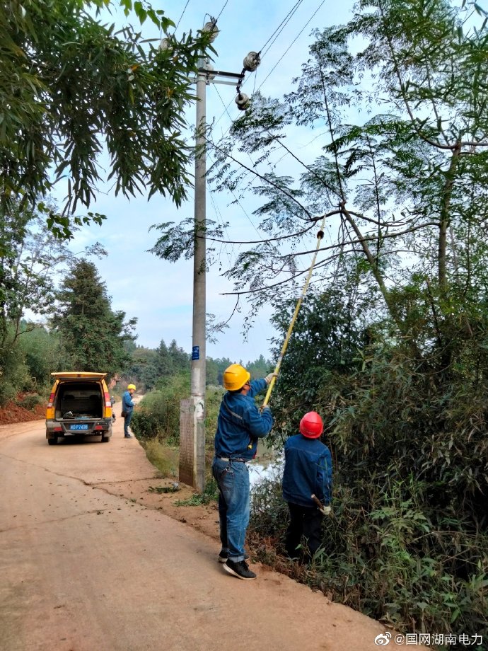 11月4日,國網(wǎng)衡山縣供電公司白果供電所配電班的電力蜀黍們對10千伏貫沖線進(jìn)行巡視工作,同步對發(fā)現(xiàn)的樹竹對線距離過近隱患進(jìn)行砍青除障工作,確保線路安全穩(wěn)定運(yùn)行。(周玉美)