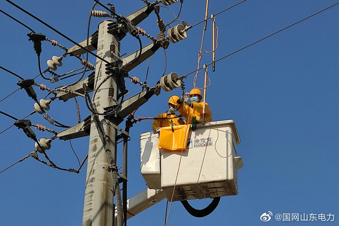【深秋帶電消缺 提升供電質(zhì)量】11月4日,國網(wǎng)萊州市供電公司?帶電作業(yè)人員在夏邱鎮(zhèn)溪家村10千伏華磊線1號鐵塔緊急帶電處理弓子線斷線缺陷,保障線路沿線企業(yè)和村民可靠用電。 ????