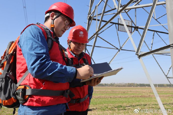 “冬日細排查,嚴把運檢關”。11月5日,河北省送變電有限公司保定運檢站員工翦英民、李巖在廠清I線N95塔位排查線路缺陷,為居民取暖用電提供堅強保障。(王瑋琳) ????