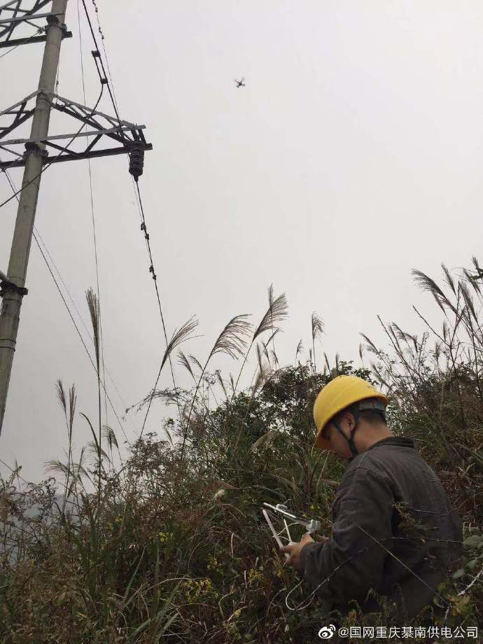 【秋安秋檢】11月18日,國(guó)網(wǎng)重慶綦南供電公司工作人員對(duì)輸電線路開展無(wú)人機(jī)巡檢 ????。