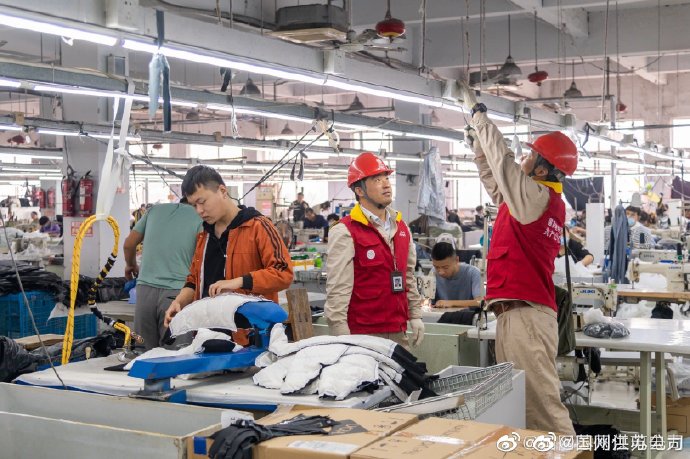 【安全檢查 確保訂單銷售】11月19日,國(guó)網(wǎng)常熟市供電公司沙家浜黨員服務(wù)隊(duì)辛莊供電所分隊(duì)來(lái)到億佰加服飾生產(chǎn)車間,為其檢查線路設(shè)備,確保訂單及時(shí)生產(chǎn)和銷售。