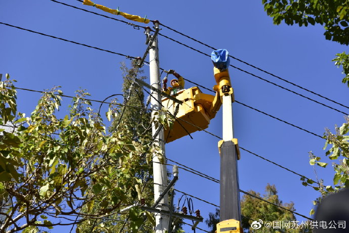 【線路“手拉手” 用電更無憂】11月19日,國網(wǎng)昆山市供電公司帶電作業(yè)班員工在淀山湖10千伏永南線4號桿開展搭接分支引線工作,有效提高供電可靠性,確保線路設備穩(wěn)定運行和周邊居民正常用電?。