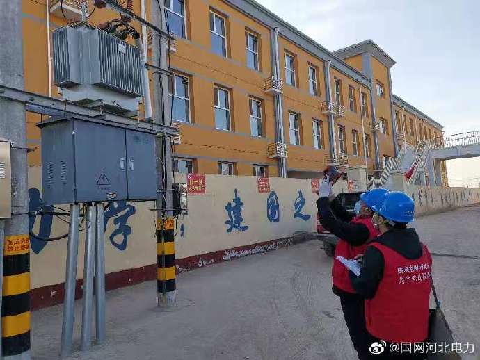 心系學校保供暖,經常測溫查隱患。12月7日,國網辛集市供電公司天宮營黨員小分隊許配琴、穆旬對吳王學校變壓器及高低壓線路進行紅外測溫,保證學校安全用電取暖,學生們溫暖度冬。(路沖 李偉杰) ????