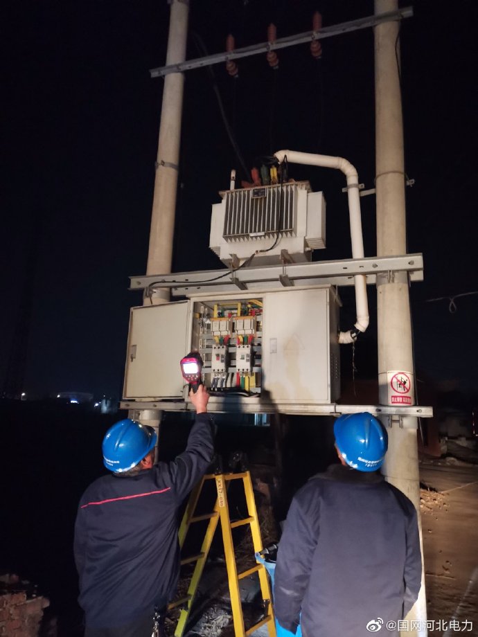 氣溫驟降,負(fù)荷長(zhǎng),電力小哥巡視保供電。隨著氣溫不斷降低,“煤改電”用戶電暖氣、空調(diào)等設(shè)備負(fù)荷快速增長(zhǎng)。12月13日夜,國(guó)網(wǎng)邢臺(tái)市環(huán)城供電公司羊范供電所員工在夜間電力負(fù)荷高峰期對(duì)變壓器、線路進(jìn)行巡視,消除故障隱患,保障用戶溫暖過(guò)冬。王維康 焦計(jì)龍) ????
