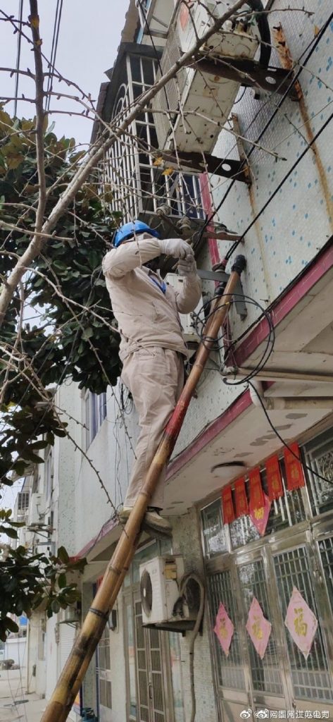 到大倫鎮(zhèn)運梁村進行接戶線改造工作