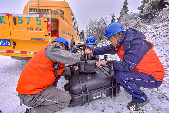 【寒潮來(lái)襲 無(wú)人機(jī)助電網(wǎng)人戰(zhàn)冰雪】12月15日,涪陵電力公司輸電運(yùn)檢二班的巡線工人踏上了輸電線路特巡之路,在110千伏濤中線36號(hào)桿塔,輸電檢修班將進(jìn)行一次雪中無(wú)人機(jī)巡線??碧胶梦恢?,取出無(wú)人機(jī),“機(jī)長(zhǎng)”黃東小心地檢視機(jī)器各部位,檢查遙控器及電量情況。確定飛行路線后,無(wú)人機(jī)一陣轟鳴,悠悠地飛了起來(lái)。沿著濤中線,無(wú)人機(jī)越飛越高,越飛越遠(yuǎn)。黃東不時(shí)地微調(diào)飛行高度和位置,使機(jī)器懸停在36號(hào)桿塔上方。“36號(hào)桿塔電桿拉線上有覆冰,需要前往現(xiàn)場(chǎng)處理?!秉S東注視著屏幕說(shuō)道。連日來(lái),受持續(xù)雨雪冰凍天氣影響,重慶涪陵武陵山區(qū)部分輸電線路出現(xiàn)了覆冰情況,給電網(wǎng)安全造成了較大壓力。冰雪天氣利用無(wú)人機(jī)巡檢,可以近距離查看導(dǎo)線覆冰厚度,金具是否出現(xiàn)磨損碰撞,實(shí)時(shí)傳回影像,影像存儲(chǔ)導(dǎo)出后還可繼續(xù)研究,為線路覆冰情況提供第一手參考資料。