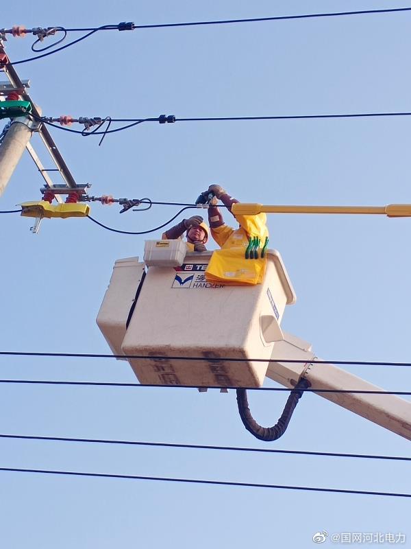 護航“煤改電”,保暖保供不停電。12月22日,國網(wǎng)新樂市供電公司帶電作業(yè)班對10千伏592西田線西田村內(nèi)分支07號桿進行帶電綁扎絕緣子,有效提高線路供電可靠性,為迎峰度冬期間電網(wǎng)安全穩(wěn)定運行奠定基礎(chǔ)。(劉志勇 谷賽特) ????