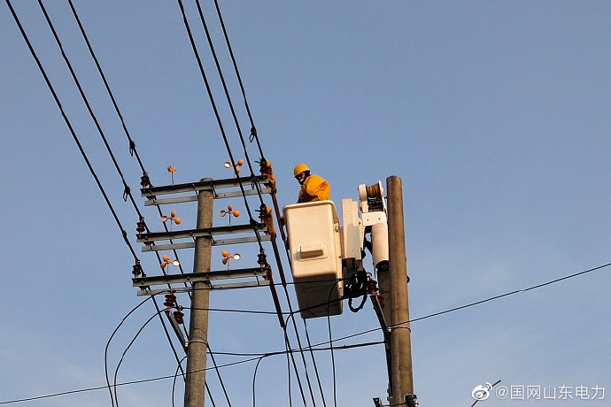 【帶電作業(yè) 保障寒冬供電穩(wěn)定】1月20日,國(guó)網(wǎng)利津縣供電公司帶電作業(yè)人員在10千伏前宋線42號(hào)桿帶電接引流導(dǎo)線,提升供電線路安全運(yùn)行水平,保障寒冬日客戶安全可靠用電。