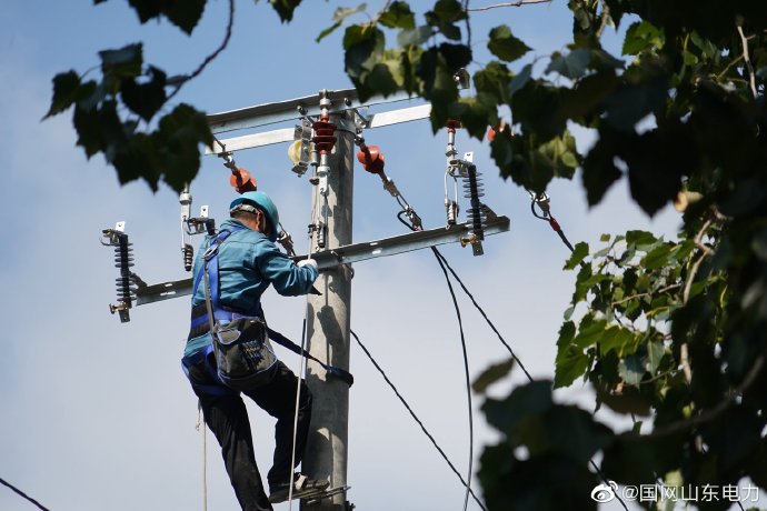 【不懼高溫遷改線路 安全可靠保供電】8月10日,國網(wǎng)平度市供電公司?施工人員在在10千伏門農(nóng)線化工支線11號桿進行線路遷改工作,工作人員克服高溫天氣,經(jīng)過兩個小時的高空作業(yè),解決了線路本體老化嚴(yán)重,線路弧垂較低等問題,進一步提高了線路運行的穩(wěn)定性和供電可靠性。 ????