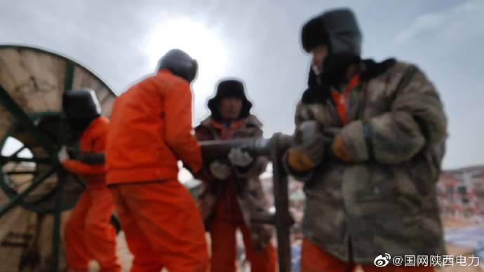 【張力機(jī)穿上花棉襖】11月29日,陜北黃土高原神木地區(qū)氣溫驟降至零下15度,由陜西送變電工程有限公司 負(fù)責(zé)施工的榆能楊伙盤(pán)煤電一體化電廠(chǎng)750千伏送出工程仍在嚴(yán)寒中進(jìn)行跨越架線(xiàn)施工作業(yè)。3062號(hào)鐵塔旁的張力場(chǎng)上,三臺(tái)大型張力機(jī)迎著寒風(fēng)在山頭中一字排開(kāi)。為了防止氣溫太低凍住油料,項(xiàng)目部緊急調(diào)配了棉被,現(xiàn)場(chǎng)的施工人員一個(gè)個(gè)都成了暖男,顧不上自己的臉被刮的生疼,先給張力機(jī)的油箱全都裹上了“花棉襖”,好似施工現(xiàn)場(chǎng)走來(lái)了淳樸的陜北婆姨。(陜送:高浪舟)