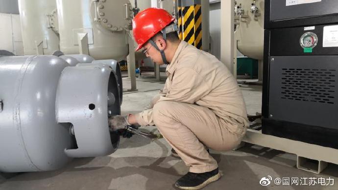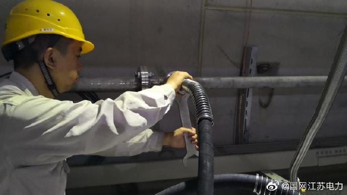 6月15日,蘇通GIL綜合管廊工程氣務(wù)工作正式啟動(dòng)。江蘇省送變電有限公司組織施工人員,采用集中供氣站充氣方案對(duì)泰吳1線南、北段和泰吳2線南、北段的四個(gè)工作面同時(shí)開展氣務(wù)工作。利用地面集中供氣站和敷設(shè)于管廊內(nèi)的5.8公里輸氣管道進(jìn)行充氣具有傳統(tǒng)充氣方式無(wú)可比擬的優(yōu)點(diǎn):無(wú)需氣瓶運(yùn)輸、出氣質(zhì)量高、充注時(shí)間短、降低安全風(fēng)險(xiǎn)、減少人力成本等,是管廊工程建設(shè)的又一“神兵利器”。
