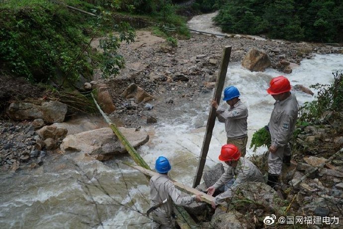 6月22日,因受強(qiáng)降雨導(dǎo)致福建省邵武市張厝鄉(xiāng)祝嶺村路段爆發(fā)山洪,致使該路段道路及供電被中斷。接到消息后邵武市供電公司的工作人員第一時(shí)間組織4部車(chē)、30余人的搶修隊(duì)伍前往受災(zāi)路段,由于滑坡道路阻斷,搶修人員只能徒步前往搶修地點(diǎn),為了方便人員和設(shè)備通過(guò),他們還架起一座簡(jiǎn)易的橋。面對(duì)暴雨的突擊,供電蜀黍早已提前部署好,風(fēng)雨再大,有他們?cè)谇胺阶o(hù)航。