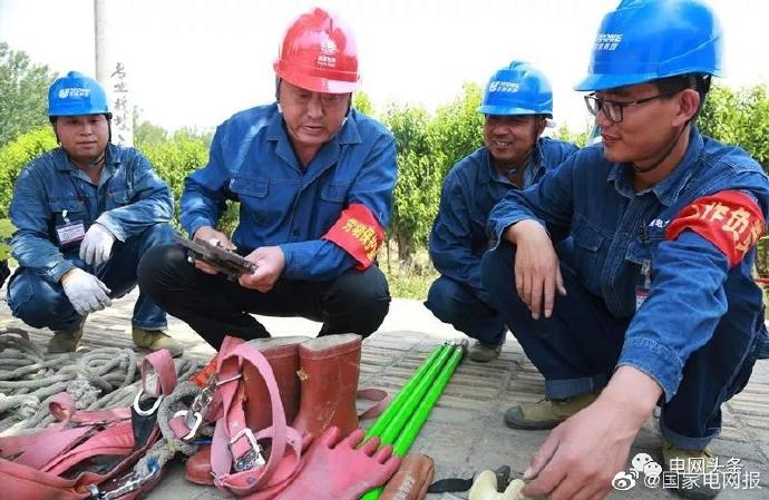 2.7月9日,河南安陽湯陰縣供電公司員工鄭學(xué)忠在伏道鎮(zhèn)后攸曇村農(nóng)網(wǎng)改造現(xiàn)場檢查一線班組的安全工具器具和個人防護(hù)用品。