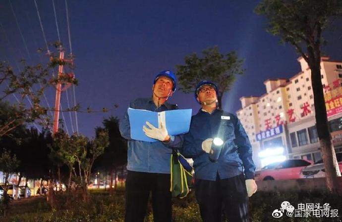 4.7月8日,山東淄博沂源縣供電公司員工徐瑋、孫兆軍在10千伏東苑線婦幼保健院支線3號桿下檢查線路。