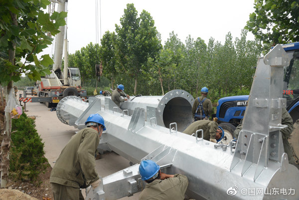 【新建線路助力地方經(jīng)濟(jì)發(fā)展】7月10日,國(guó)網(wǎng)莒縣供電公司施工人員在莒縣劉官莊鎮(zhèn)10千伏通達(dá)線富強(qiáng)支線組立9號(hào)轉(zhuǎn)角鐵塔。工程投運(yùn)后,將大大提升迎峰度夏期間線路供電能力,為當(dāng)?shù)仄髽I(yè)生產(chǎn)提供充足電力供應(yīng)。 ????