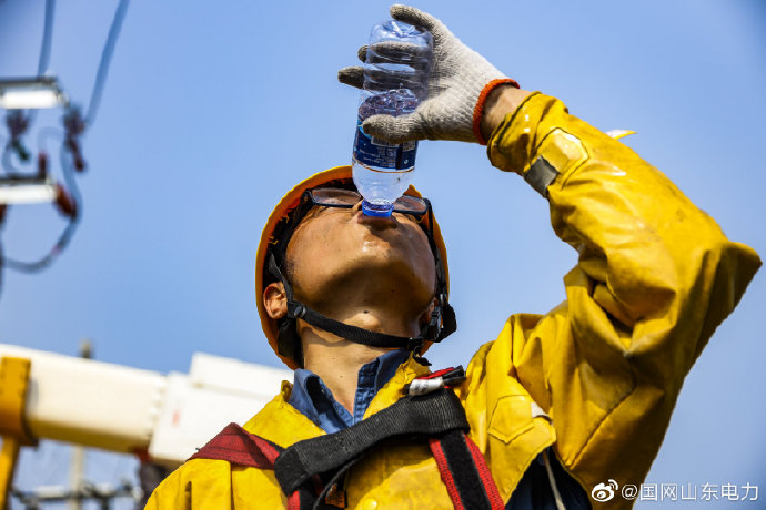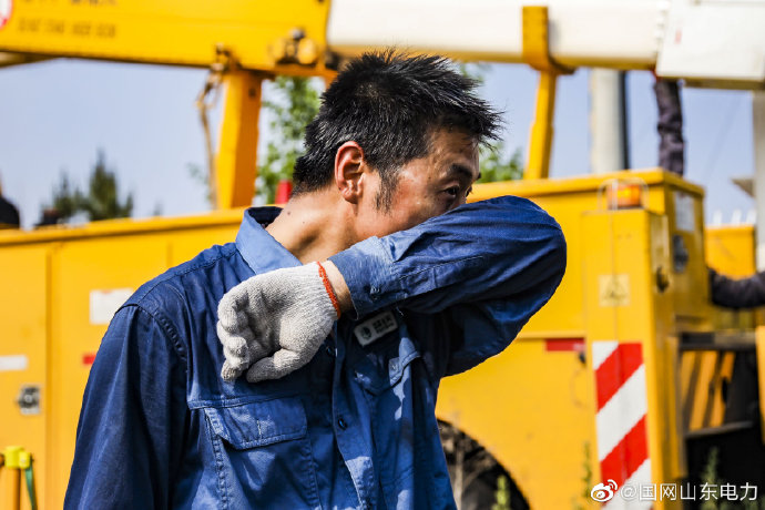 【高溫天 帶電作業(yè)太陽之下“洗個澡”】7月10日,國網(wǎng)榮成市供電公司帶電作業(yè)班頂33攝氏度高溫,完成10千伏興裕線39號桿帶電接火任務后,兩名洗過“汗蒸”的作業(yè)人員邊擦拭不止的汗水邊笑著說:“本以為前面的兩場活汗都流盡了,沒想到,又‘洗了個澡’”。當天,還有“兩場澡”等著他們。 ????