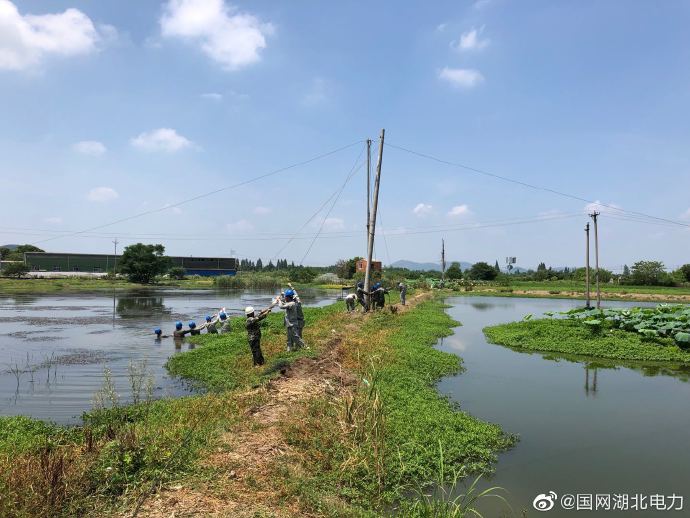 【湖中巧立桿,送去“安心電”】7月23日,國(guó)網(wǎng)武漢市蔡甸區(qū)供電公司侏儒供電所在10kV侏508馬賽線鐵爐支線立桿架線,電力工人們頭頂烈日,泡在水里立桿放線,只為附近居民早日用上“安心電”。