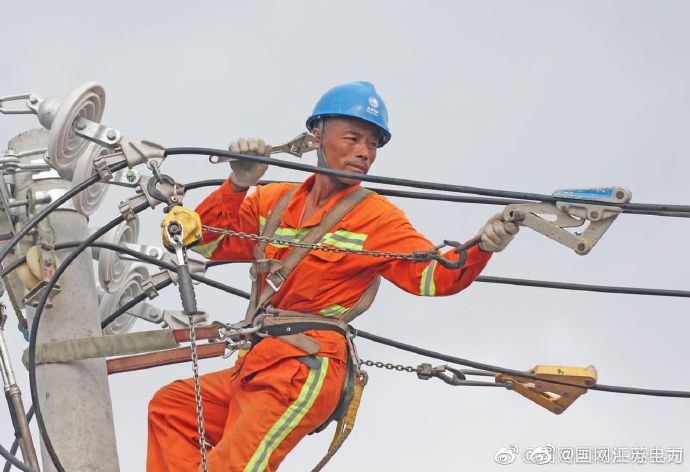 【戰(zhàn)高溫改電網(wǎng) 保障小微企業(yè)用電】7月27日,國網(wǎng)東臺(tái)市供電公司電力施工人員戰(zhàn)高溫,為溱東鎮(zhèn)開莊村小微企業(yè)改造供電線路,滿足發(fā)展用電需求,保障盛夏可靠用電。 ????