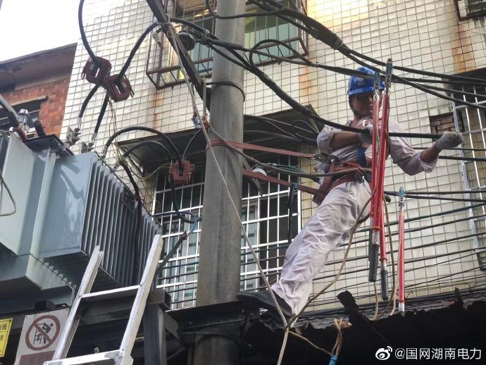 因用電負(fù)荷過大,10KV九南線紅豆市場(chǎng)臺(tái)區(qū)低壓測(cè)B相出線燒斷。國網(wǎng)南縣供電公司搶修人員在對(duì)該臺(tái)變壓器采取緊急措施后,立即進(jìn)行現(xiàn)場(chǎng)搶修工作,時(shí)間一分一秒過去,天氣悶熱,幾分鐘時(shí)間汗水便浸透了他們的工作服。