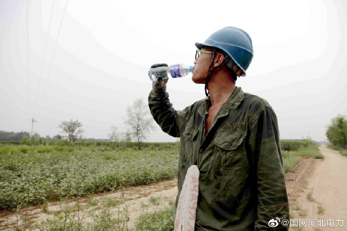 七月流火,正是一年之中最熱的季節(jié)。滾滾熱浪令人窒息,很多人對(duì)出門都望而卻步。然而,有這樣一群人,他們戰(zhàn)高溫、斗酷暑,頑強(qiáng)地奮戰(zhàn)在電網(wǎng)迎峰度夏第一線。7月28日,10千伏武專523線路武官寨公變3設(shè)備線夾燒斷,國(guó)網(wǎng)故城縣供電公司立即組織人員進(jìn)行搶修,搶修人員冒著高溫攀爬在接近40度的電線桿上,一絲不茍地開(kāi)展搶修作業(yè),任憑滿臉的汗水順著脖子流淌,濕透了衣襟,他們?nèi)活櫜簧喜潦靡幌隆D為故障全部排除、線路恢復(fù)供電后,從桿上下來(lái)的搶修人員正在補(bǔ)充水分。