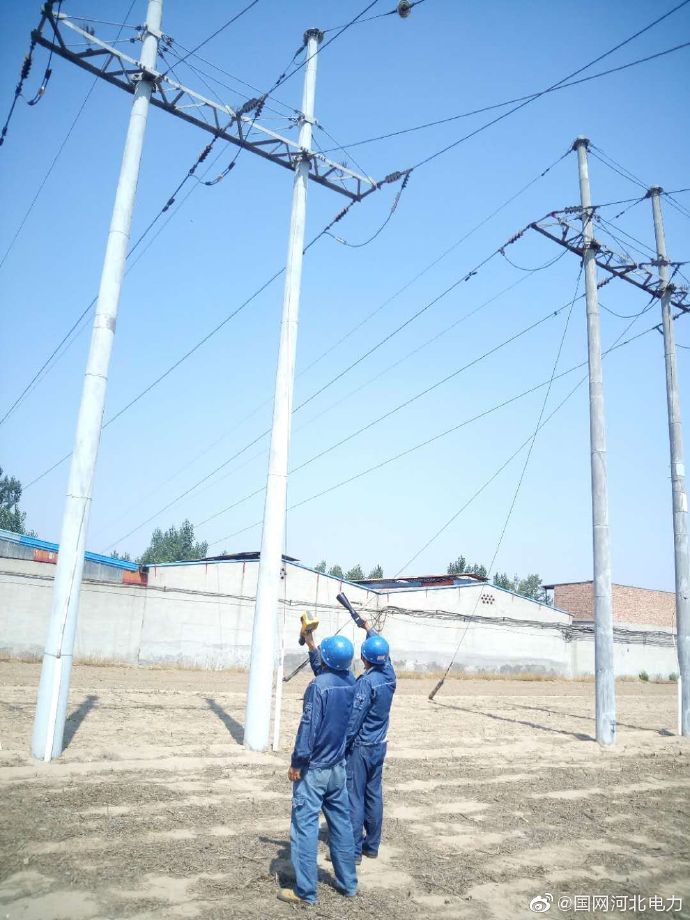 我們?nèi)蔽溲b,踏上這沒有硝煙的戰(zhàn)場,我們把激情唱響,辛勤的節(jié)奏多高亢,炎炎烈日也無法阻擋。圖為7月28日,國網(wǎng)安平縣供電公司員工為保障電網(wǎng)安全迎峰度夏,對重要輸電線路進行遠紅外測溫和局放檢測。