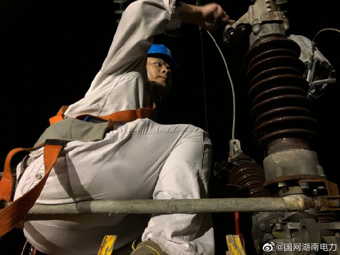 8月3日凌晨,國(guó)網(wǎng)湖南省電力有限益陽供電分公司變電檢修檢修公司變電檢修班員工陳思勃正在抓緊時(shí)間消除35千伏泥石線4063隔離開關(guān)B相觸頭發(fā)熱缺陷。
