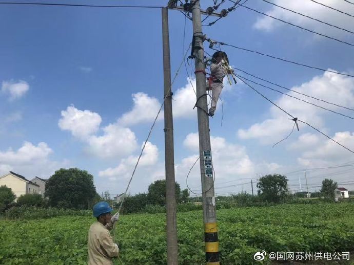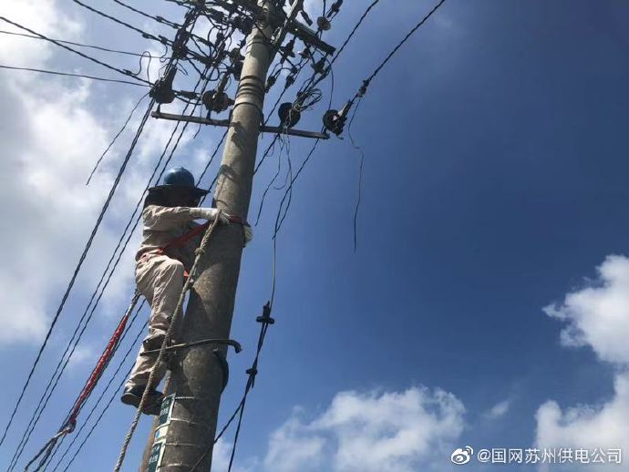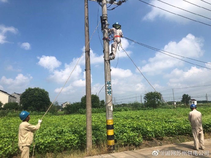 8月6日上午,國網(wǎng)蘇州市吳江區(qū)供電公司松陵供電所搶修人員在新營1號變拆除存在安全隱患的廢舊線路。拆除廢舊線路工作可消除老舊跨越線路的安全隱患,避免線路退役后,長期無人運行維護引發(fā)的倒桿、電線事故,有效保障了其它電力線路的安全運行和行人人身安全。