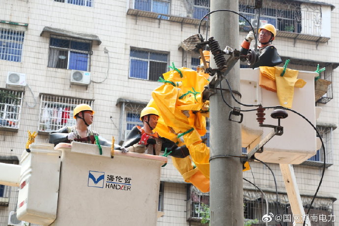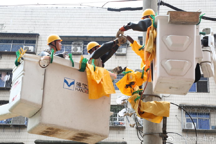 昨日上午11時許,婁星區(qū)供電支公司帶電作業(yè)工作人員正頂著烈日,穿著厚厚的絕緣服在婁底老街10千伏九沿線#095桿上帶負(fù)荷更換跌落保險,客戶用電沒有受到任何影響,受到了周邊商戶的一致好評。