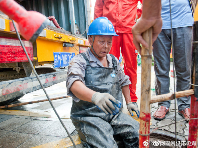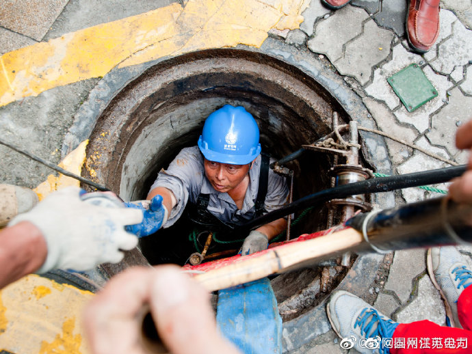 靖江市供電公司員工在靖城鎮(zhèn)御水灣小區(qū)的陰井下作業(yè)