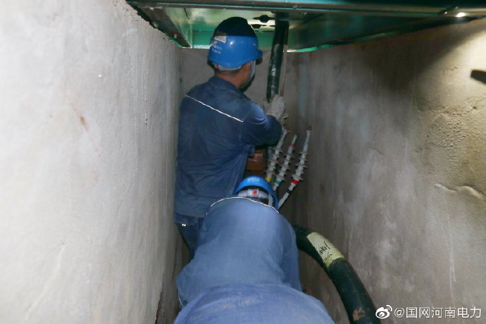 8月18日,國網(wǎng)濟(jì)源供電公司組織近20名施工人員對10千伏Ⅰ罡城春天花苑1號電纜分接箱進(jìn)行拆舊換新,在分接箱的底座內(nèi),不足80公分寬的狹小空間內(nèi),三四名施工人員一點(diǎn)點(diǎn)對地埋電纜進(jìn)行安裝,全力保障該分接箱安全可靠供電。