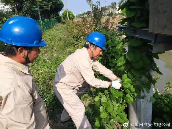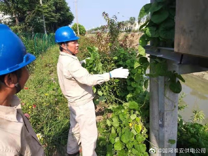 淮安供電營(yíng)業(yè)部施河供電所開(kāi)展藤蔓清理消缺工作