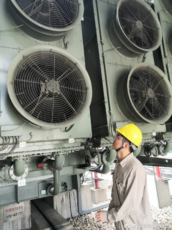【更換風(fēng)扇 安措先行】8月26日,國網(wǎng)江蘇檢修公司特高壓中心政平換流站人員開展換流變風(fēng)扇異響更換工作。運(yùn)維人員在現(xiàn)場(chǎng)認(rèn)真核對(duì)風(fēng)扇組工作狀態(tài),調(diào)整換流變冷卻器風(fēng)扇的工作模式,做好各項(xiàng)安全措施,為檢修工作“保駕護(hù)航”。 ????