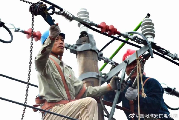 盱眙縣供電公司冒雨搶修10千伏179加油站線2號桿遭雷擊后B相及C相導(dǎo)線同時斷落