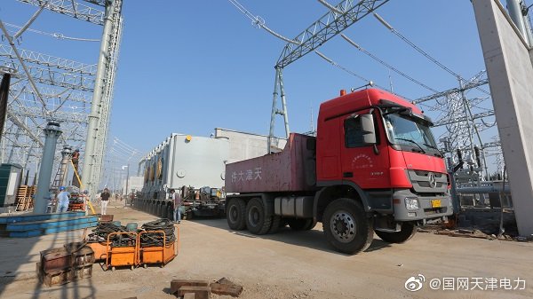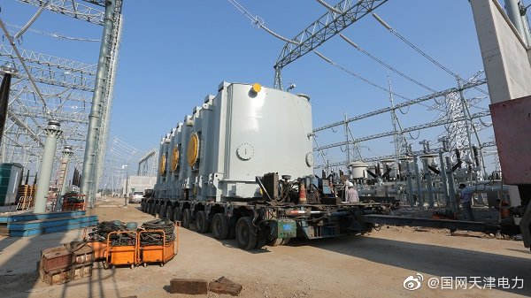 國網(wǎng)天津建設(shè)公司:天津渠陽(寶北)500kV變電站工程首臺(tái)三相一體500千伏主變壓器順利上臺(tái)就位
