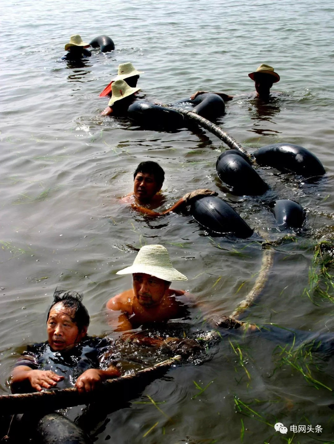 ?湖北“戶戶通電”工程現(xiàn)場,供電員工泡在水中敷設深水電纜。