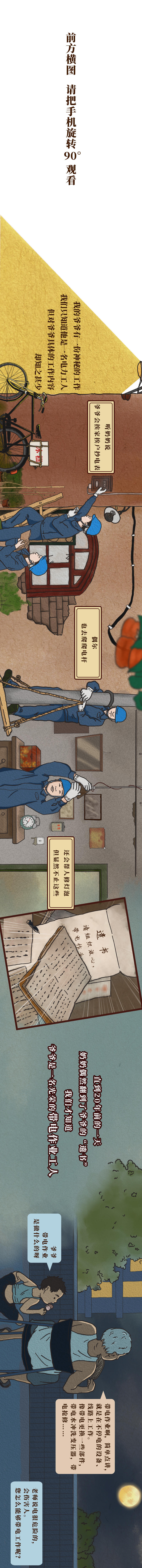 【70年長圖繪 | 爺爺?shù)纳衩毓ぷ鳌邏壕€上的“手術(shù)師”】或許你現(xiàn)在在晚高峰的地鐵上,我們想象一下,如果此時停電了,會怎么樣呢?正在做手術(shù)的醫(yī)院,準備發(fā)射的衛(wèi)星,即將開場的奧運開幕式,如果停電了,又意味著什么?有這樣一群人,不管風吹日曬,為了讓人們用電穩(wěn)定,他們冒著生命危險進行帶電作業(yè)。今天就讓我們走近這些高壓線上的“手術(shù)師”,看看他們在近70年里發(fā)生了哪些變化。