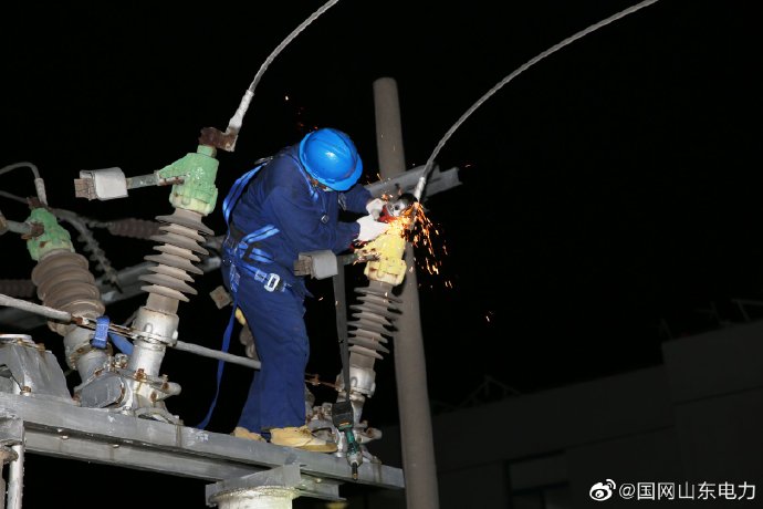 【夜間更換刀閘 提高設(shè)備健康水平】4月26日凌晨, 國(guó)網(wǎng)萊西市供電公司12名運(yùn)維檢修人員在12組探照燈的幫助下,對(duì)35千伏日莊變電站的7組刀閘開(kāi)展整體更換工作,確保電網(wǎng)設(shè)備安全迎峰度夏。經(jīng)過(guò)四個(gè)小時(shí)的奮戰(zhàn),所有老化刀閘全部更換完畢,提升了變電站供電設(shè)備健康水平,保障電網(wǎng)安全可靠運(yùn)行。 ????