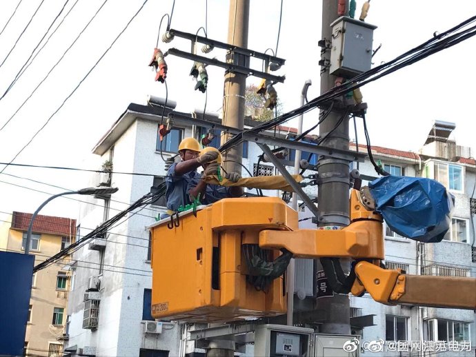 【帶電檢修保障居民用電】8月6日,國網(wǎng)揚州供電公司配電運檢室?guī)щ娮鳂I(yè)人員帶電檢修線路,保證用戶可靠用電。 ????