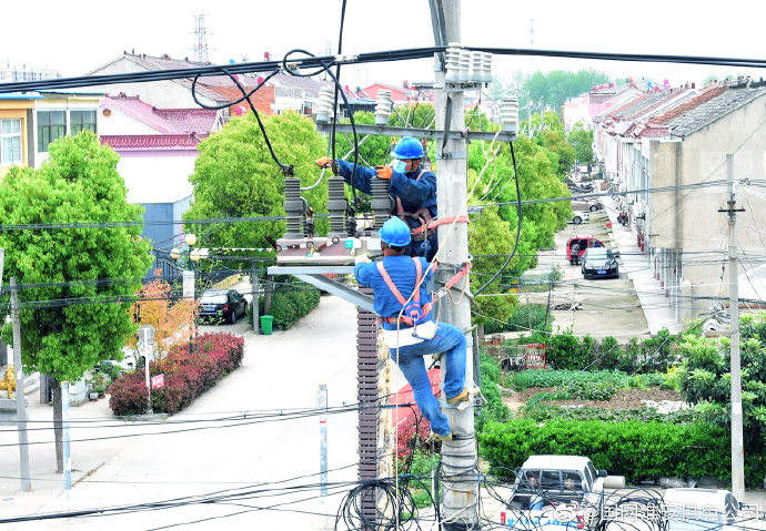 【調(diào)整電網(wǎng)結(jié)構(gòu)??優(yōu)化供電質(zhì)量】 4月16日,盱眙縣馬壩供電所員工許俊奎、雍友林在10千伏164線馬壩街道支線37號桿拆卸斷路器,更換為智能型斷路器,科學(xué)管控線路用電負(fù)荷承載率,適時(shí)監(jiān)控線路泄露電流,遇到突發(fā)性故障能夠迅速斷電,確保人員、設(shè)備不受傷害。