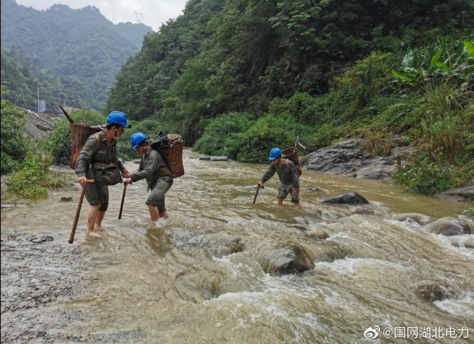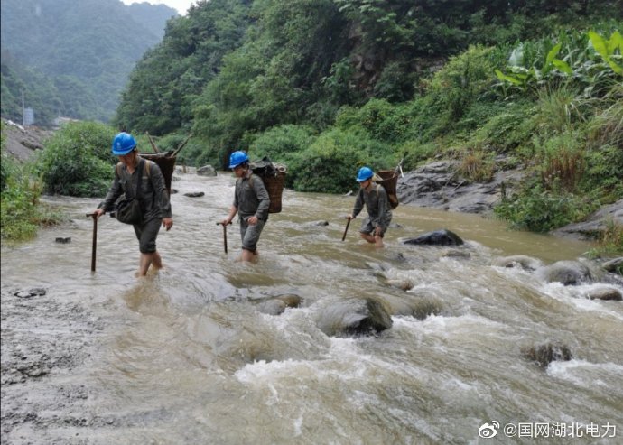 6月9日,國(guó)網(wǎng)湖北檢修公司宜昌分部員工前往500kV盤宜二回397號(hào)桿塔更換絕緣子的途中突遇大雨,夾雜著汗水和雨水的工作服很快濕透,作業(yè)人員背負(fù)40多斤的作業(yè)工器具繼續(xù)跋山涉水,隨后在40米高的鐵塔上完成了操作任務(wù)。