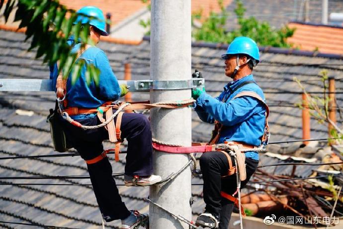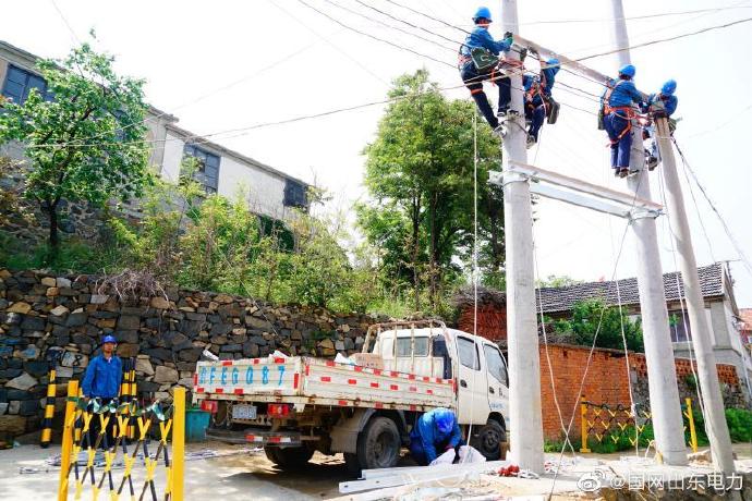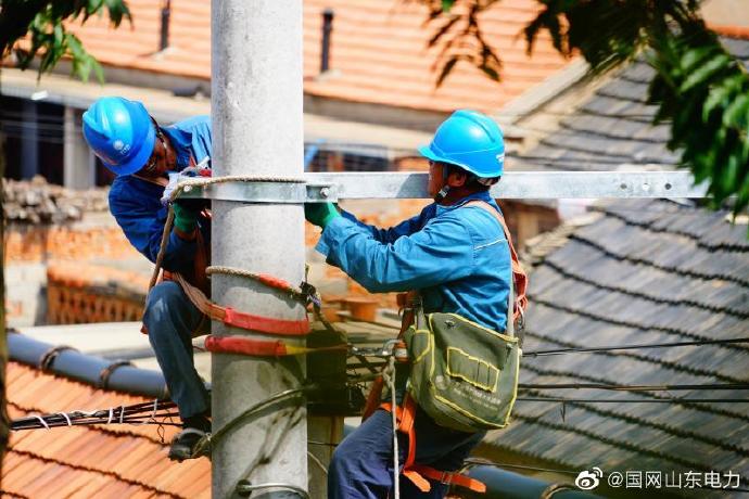 5月29日,國(guó)網(wǎng)棲霞市供電公司工作人員在西城鎮(zhèn)立桿、架線、增設(shè)新臺(tái)區(qū),保障夏季用電高峰居民安全用電無(wú)后顧之憂。 ????