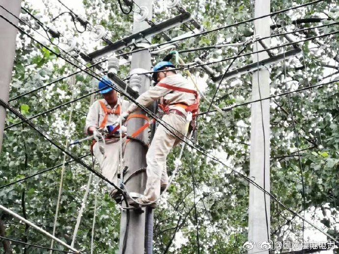 【58年大樹砸斷線,奮力搶修保供電】8月1日,沛縣鹿樓鎮(zhèn)鴛樓高莊、丁莊大隊(duì)受局部強(qiáng)風(fēng)暴雨惡劣天氣影響,線路受損嚴(yán)重,國網(wǎng)沛縣供電公司鹿樓供電所員工第一時(shí)間趕到現(xiàn)場,并根據(jù)搶修預(yù)案,積極清理通道,搶修受損線路,及時(shí)消缺安全隱患,確保該地區(qū)居民正常用電。 ????
