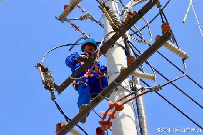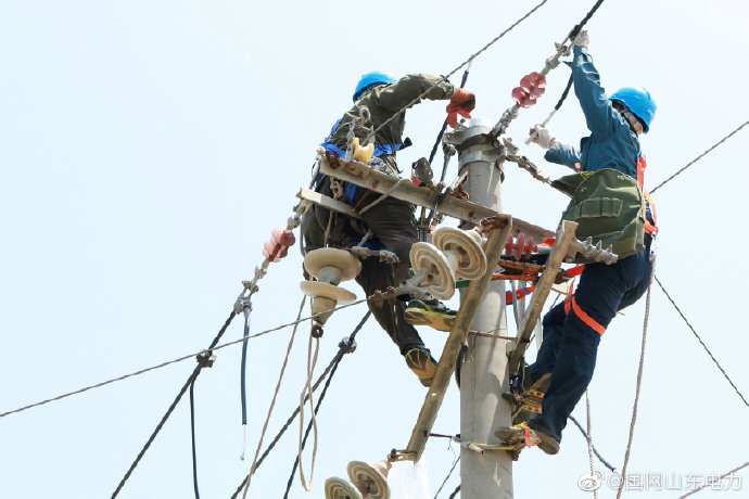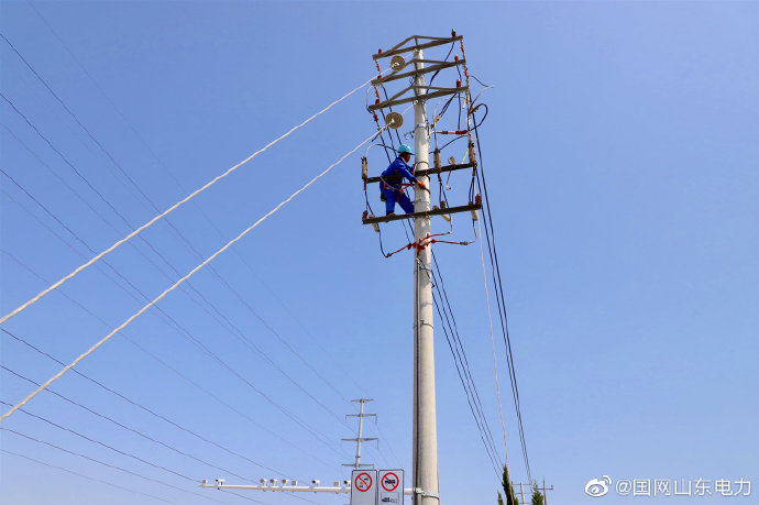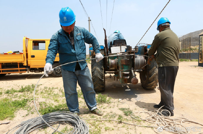 6月2日,國網(wǎng)費縣供電公司工作人員頂烈日加快進行10千伏郝家村線后溝支線、夏家溝支線配網(wǎng)線路升級改造工作,新架設150平方毫米絕緣導線2000余米,為助力新農(nóng)村建設及當?shù)厝罕娗鍥龆认奶峁┍U稀?????