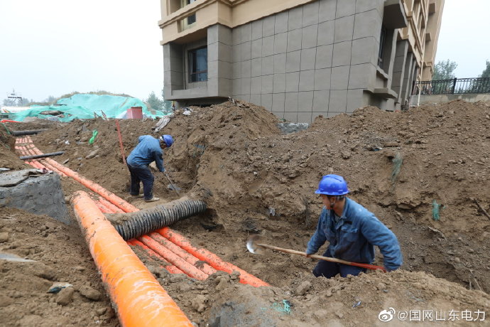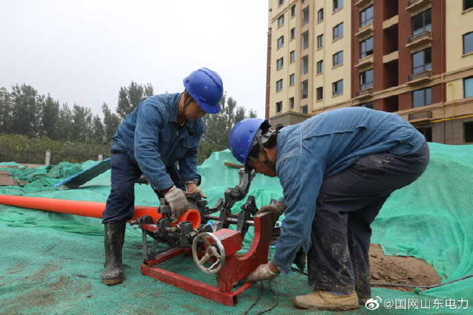 【社區(qū)建設發(fā)展旺,電力先行來幫忙】10月10日,武城縣東部一建設中的社區(qū)工地內,國網(wǎng)武城縣供電公司施工人員冒著小雨,為該社區(qū)敷設電纜保護管道,并制作電纜接頭,確保11月底前該社區(qū)全部電力設施安裝就位。 ????