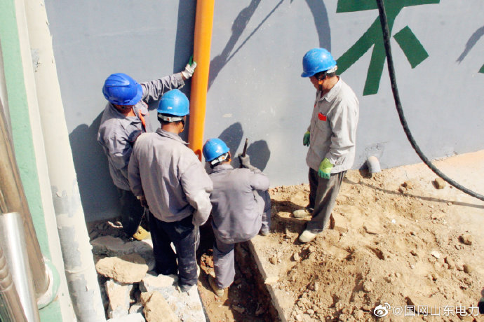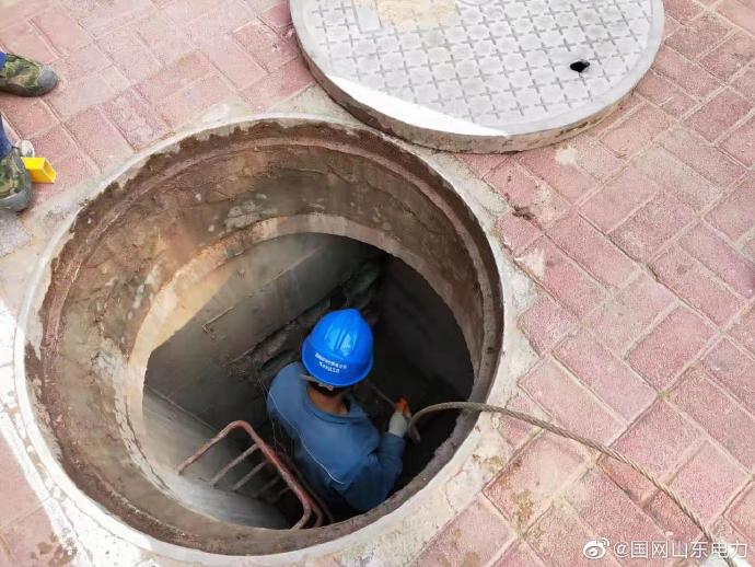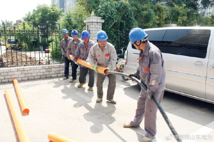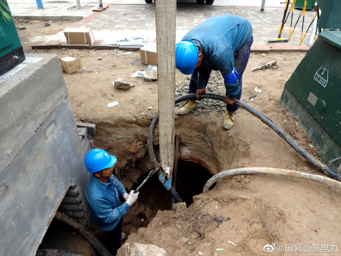 臨沂供電公司在朝陽(yáng)社區(qū)電纜入地施工現(xiàn)場(chǎng)