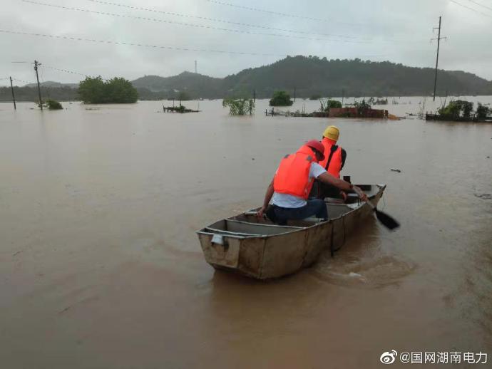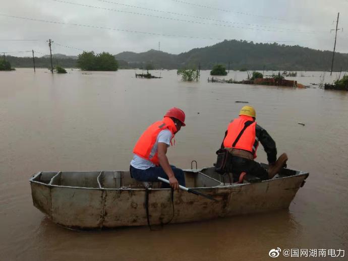 國(guó)網(wǎng)衡東縣供電公司:組織電力搶修人員劃船對(duì)吳湖線紅茶亭配變進(jìn)行搶修